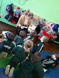 Al finalizar su linda visita nos convidó con unas ricas galletitas realizadas con mucho cariño, con formas de remeras, representando las camisetas de nuestra querida Sagrada Familia.
