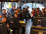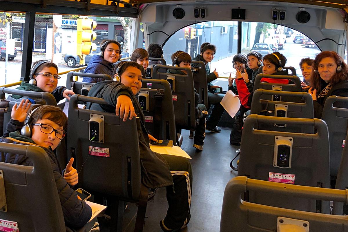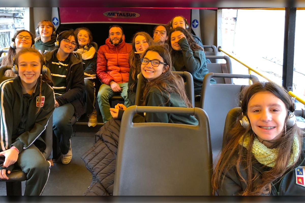 En todo el circuito, mediante auriculares disponibles a bordo, a través de una consola en cada asiento, los estudiantes escucharon la explicación del tramo que recorre, seleccionando el idioma de su preferencia.
