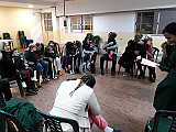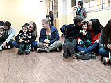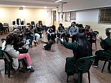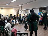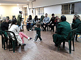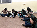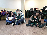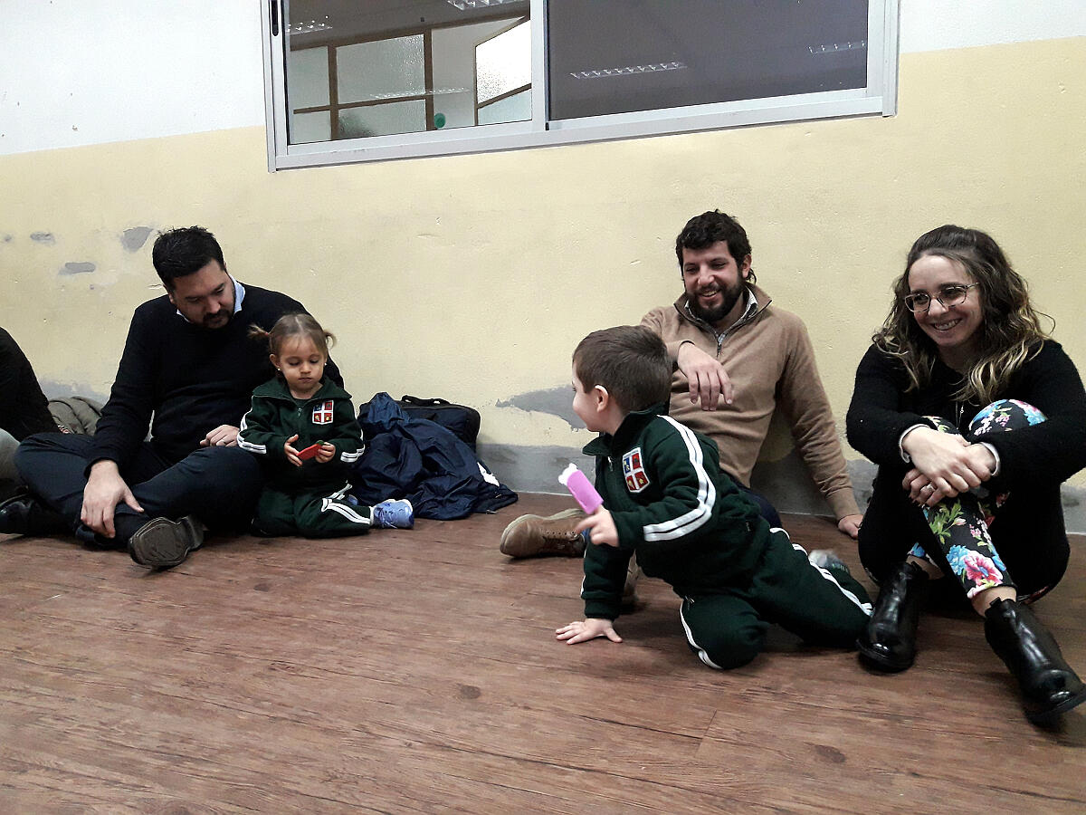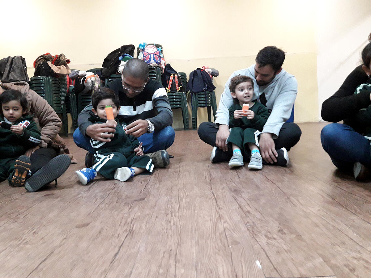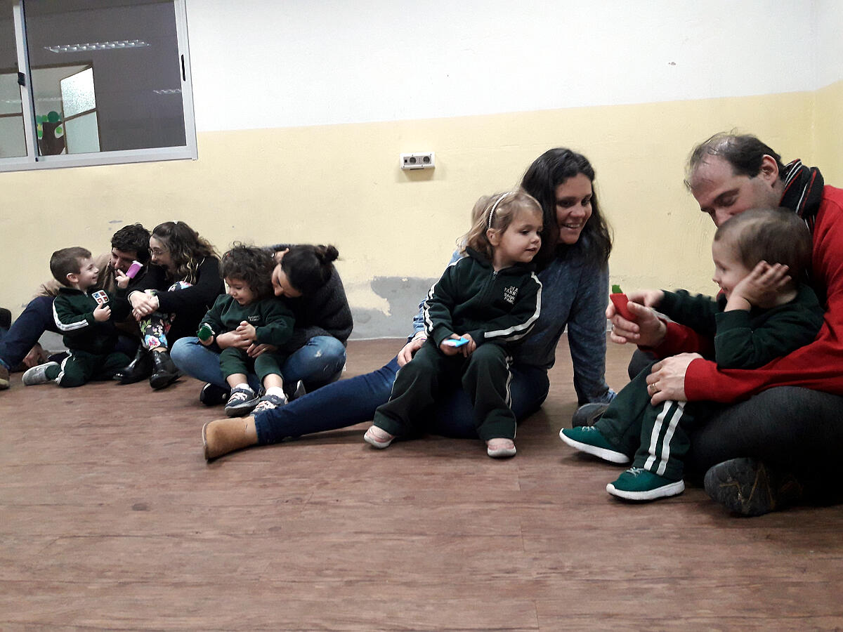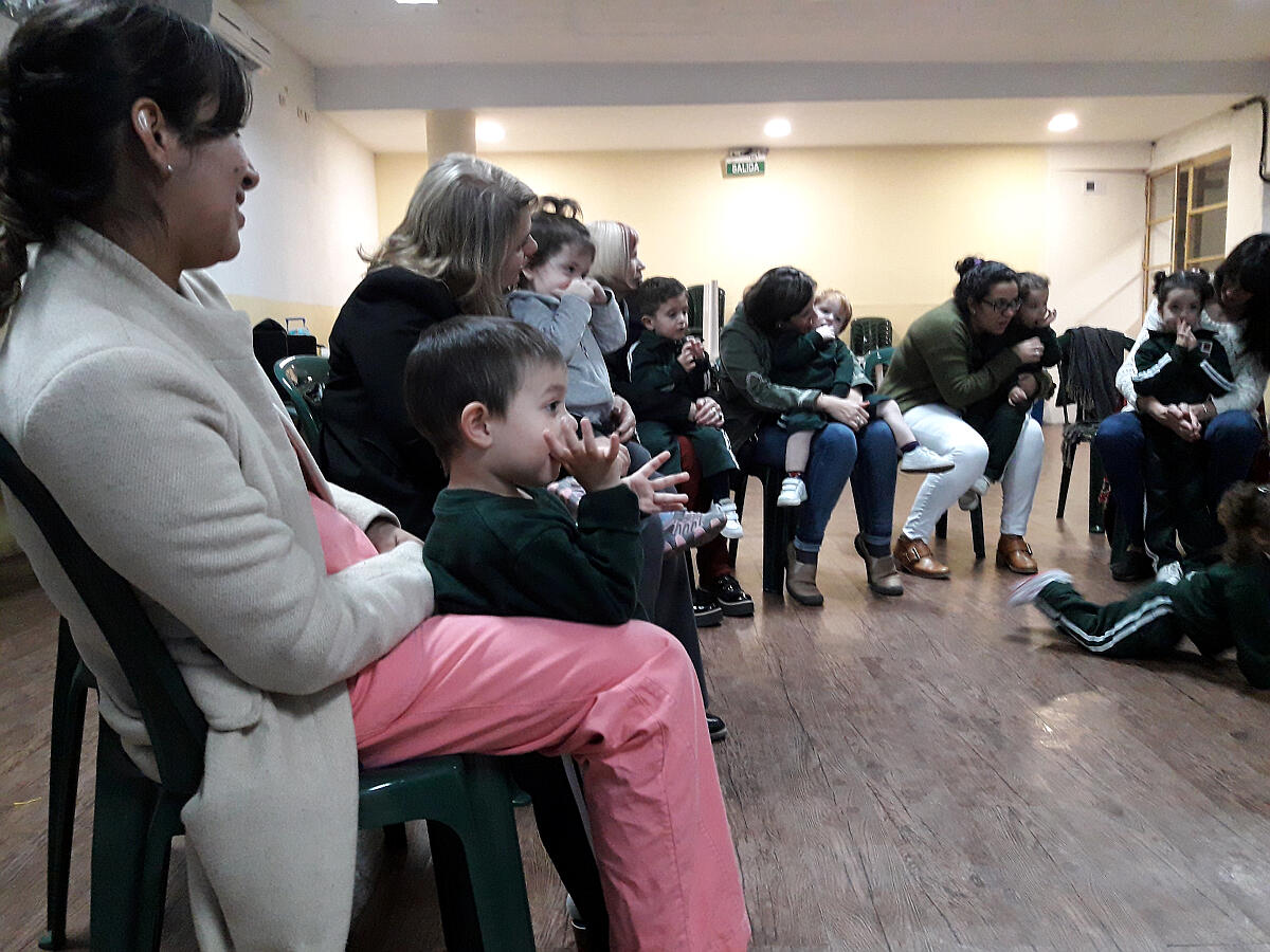 Para comenzar, jugamos con una canción en la que nuestras manos se convertían en un divertido libro del que se escuchaban diferentes animales. Luego, leímos una de las tantas historias que conocemos sobre el oso Oscar. Esta contaba sobre aquella vez en la que Oscar tenía frío y cómo el abrazo de una amiga logró abrigarlo.