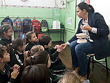 Nos trajo una dentadura y cepillos para practicar el correcto cepillado y así poder tener siempre sanos nuestros dientes.